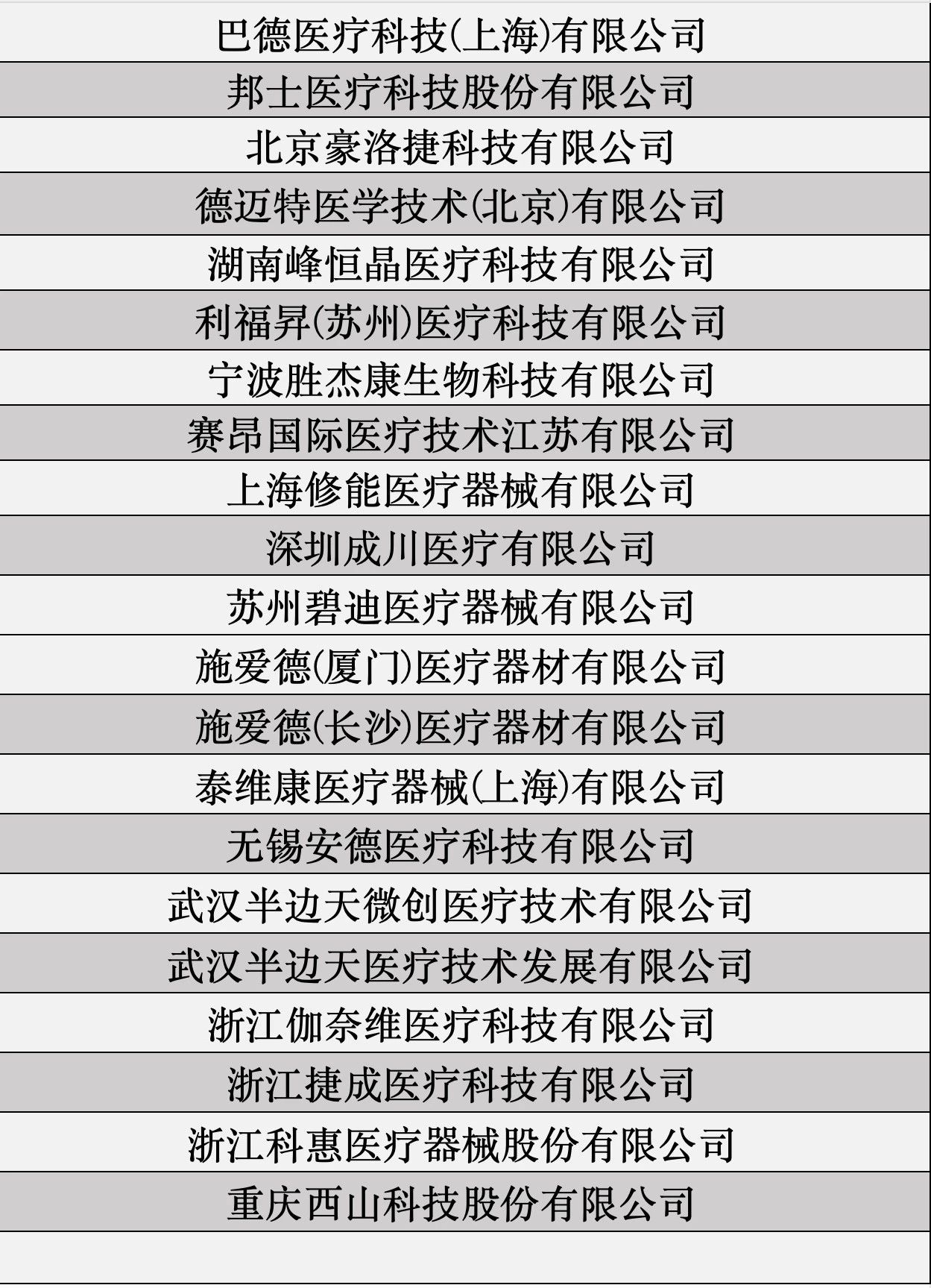 截至2024年11月1日,已獲得C碼的乳房旋切針企業如下: