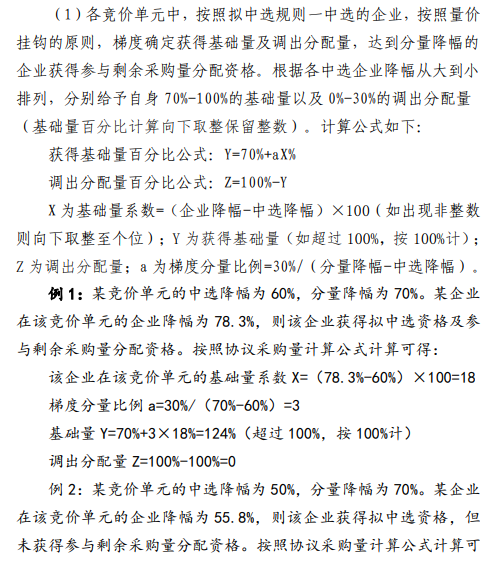 其中指出,企業(yè)降幅達到中選降幅的,獲得擬中選資格;企業(yè)降幅達分量降幅的,獲得參與剩余采購量分配資格。