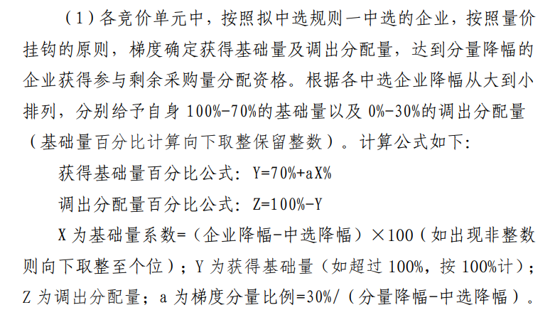 (1)擬中選規則一:同一競價單元內,企業降幅達相應中選降幅要求的企業獲得擬中選資格。