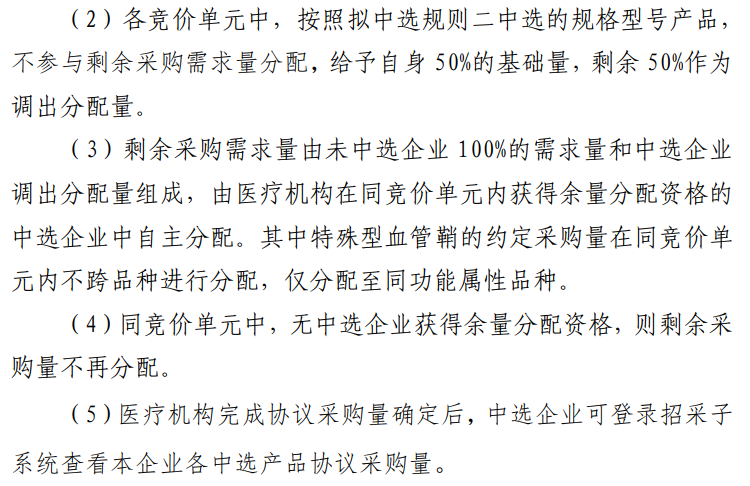 (2)擬中選規則二:企業申報報價已符合報價要求,但企業報價未達到對應競價單元的中選降幅要求,若競價單元內對應規格型號產品在省際聯盟帶量采購項目曾中選,則該規格型號產品獲得擬中選資格。
