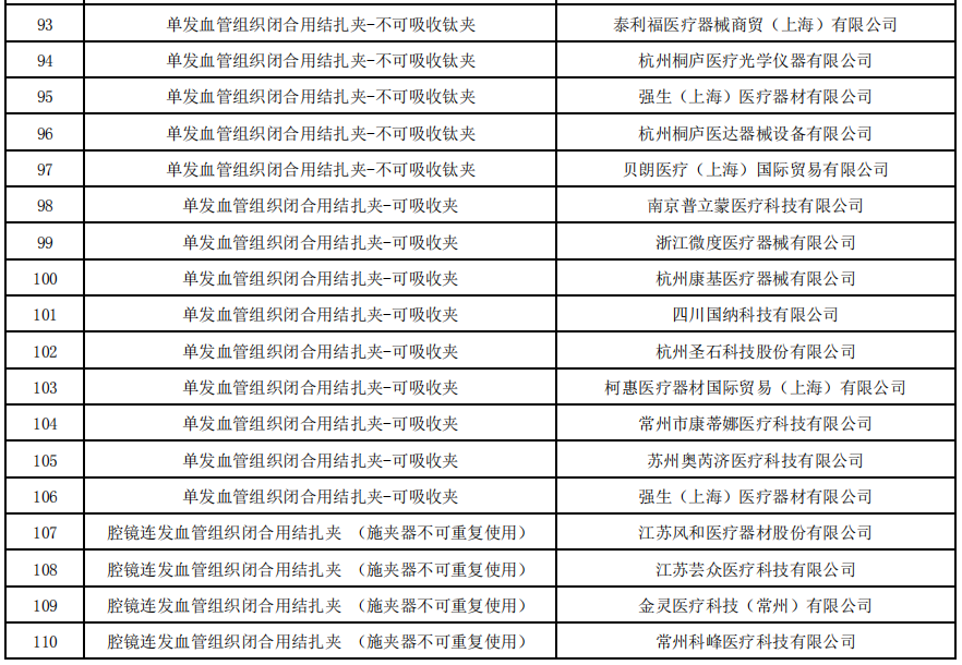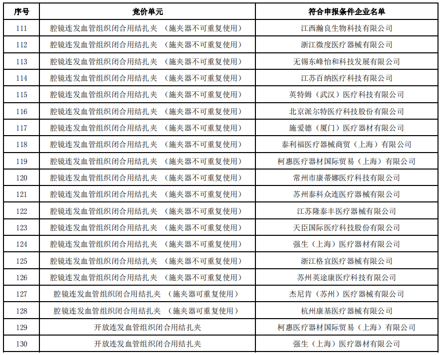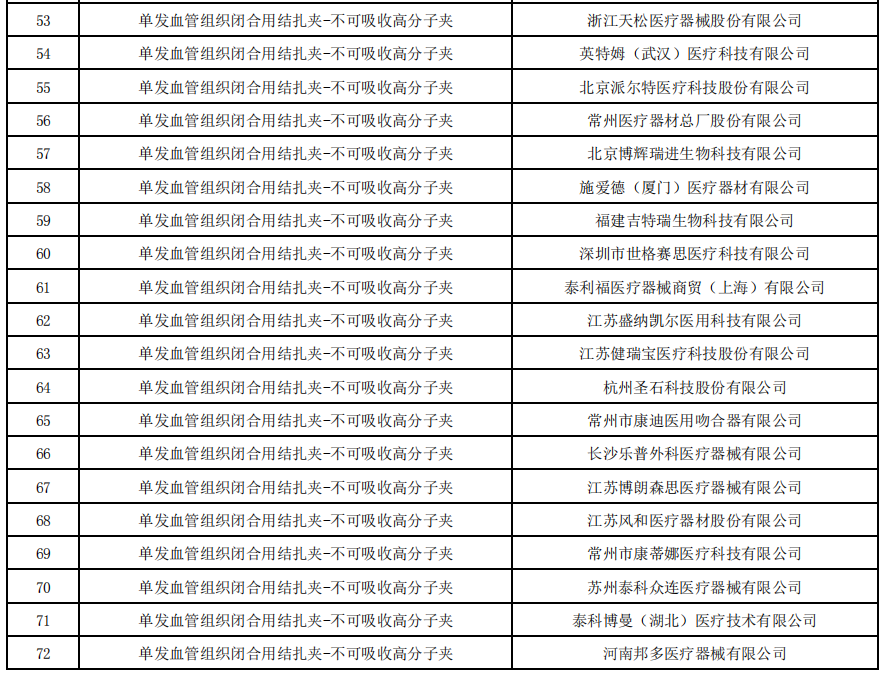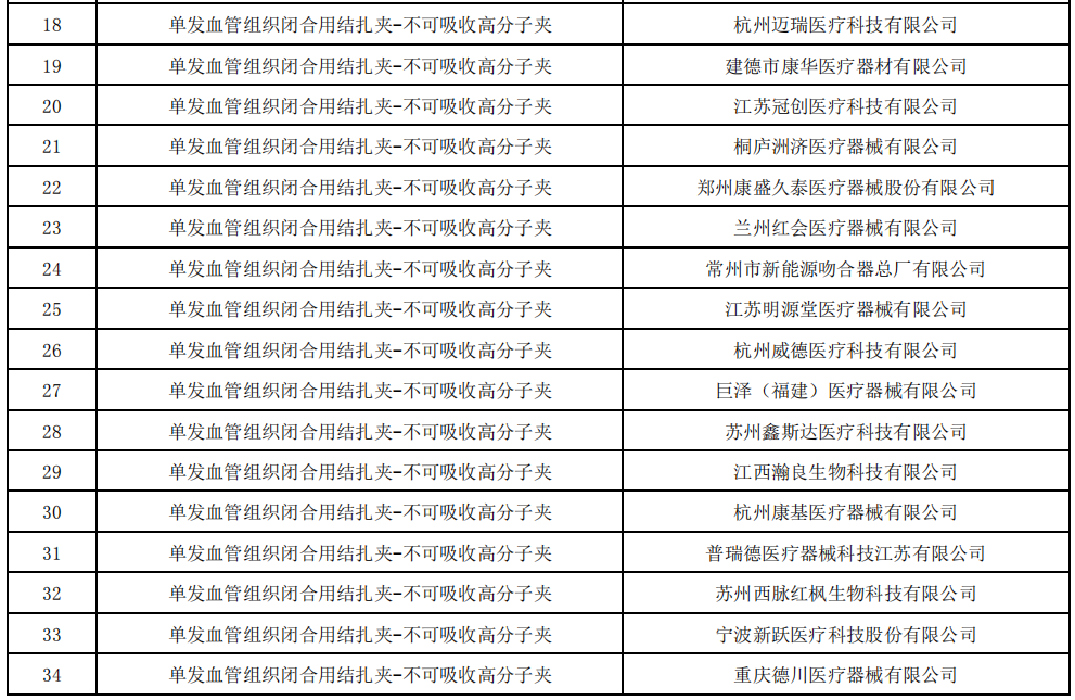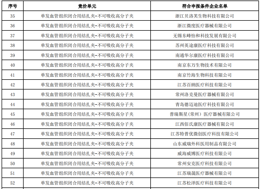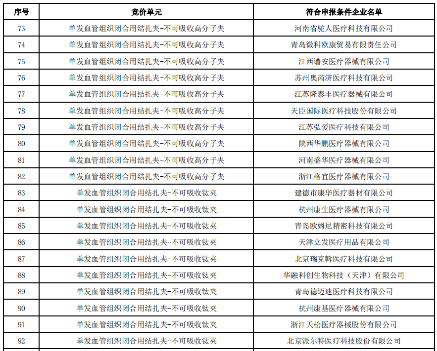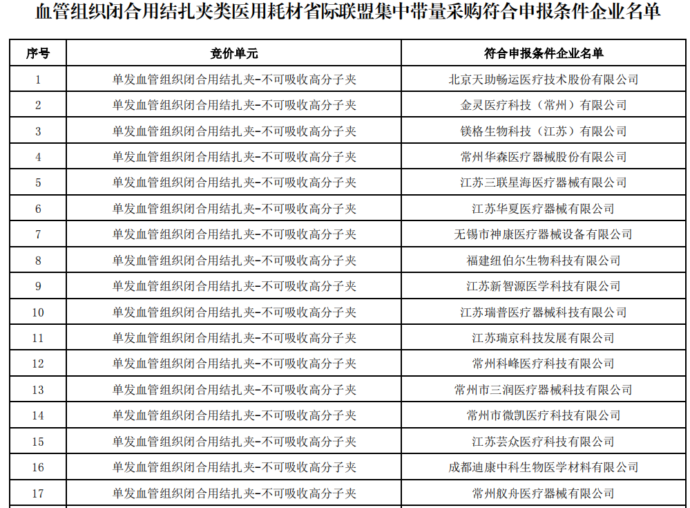 8月16日,福建醫保局發布《血管組織閉合用結扎夾類醫用耗材省際聯盟集中帶量采購公告(第5號)》,公布了符合申報條件的企業名單。