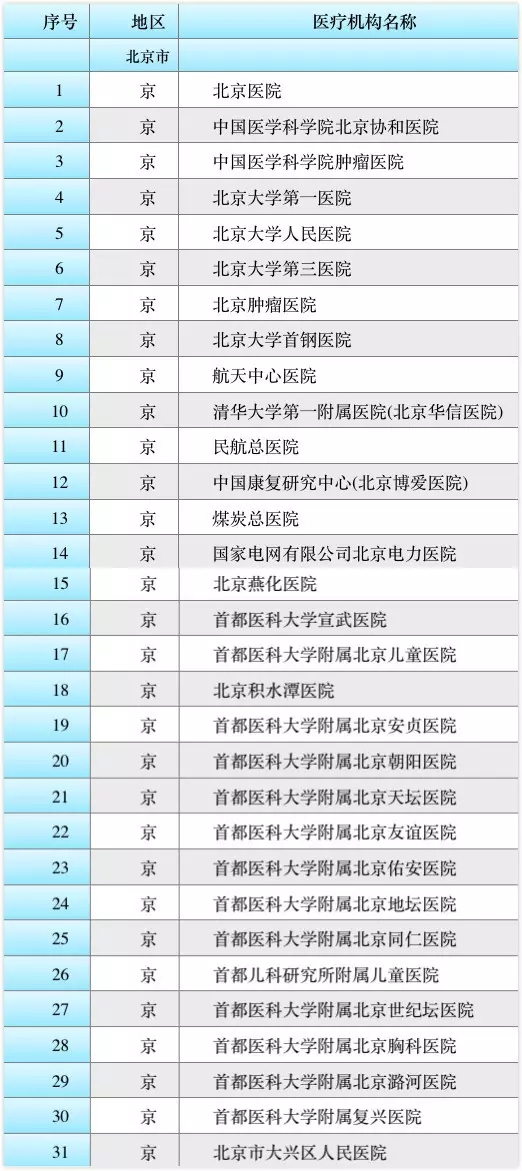 首批試行醫學影像檢查資料共享的醫療機構(北京市)