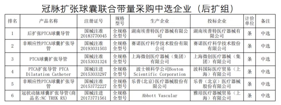后擴組冠脈擴張球囊中選企業(yè)包括湖南埃普特、賽諾醫(yī)療、上海微創(chuàng)、波科、樂普、雅培。