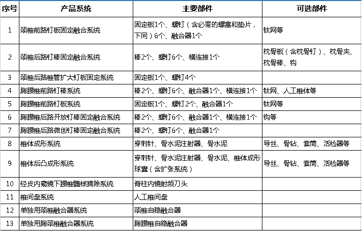 文件提出,以臨床需求為出發(fā)點(diǎn),根據(jù)手術(shù)類型、手術(shù)部位、入路方式等組件產(chǎn)品系統(tǒng)進(jìn)行采購(gòu)。產(chǎn)品系統(tǒng)共分為13個(gè),分別如下: