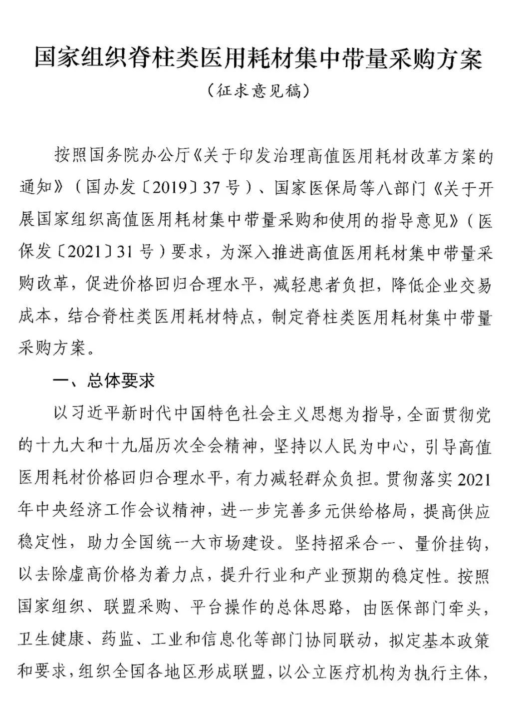 重磅!脊柱類國(guó)采方案征求意見(jiàn)稿出爐,透露了哪些重要信息?
