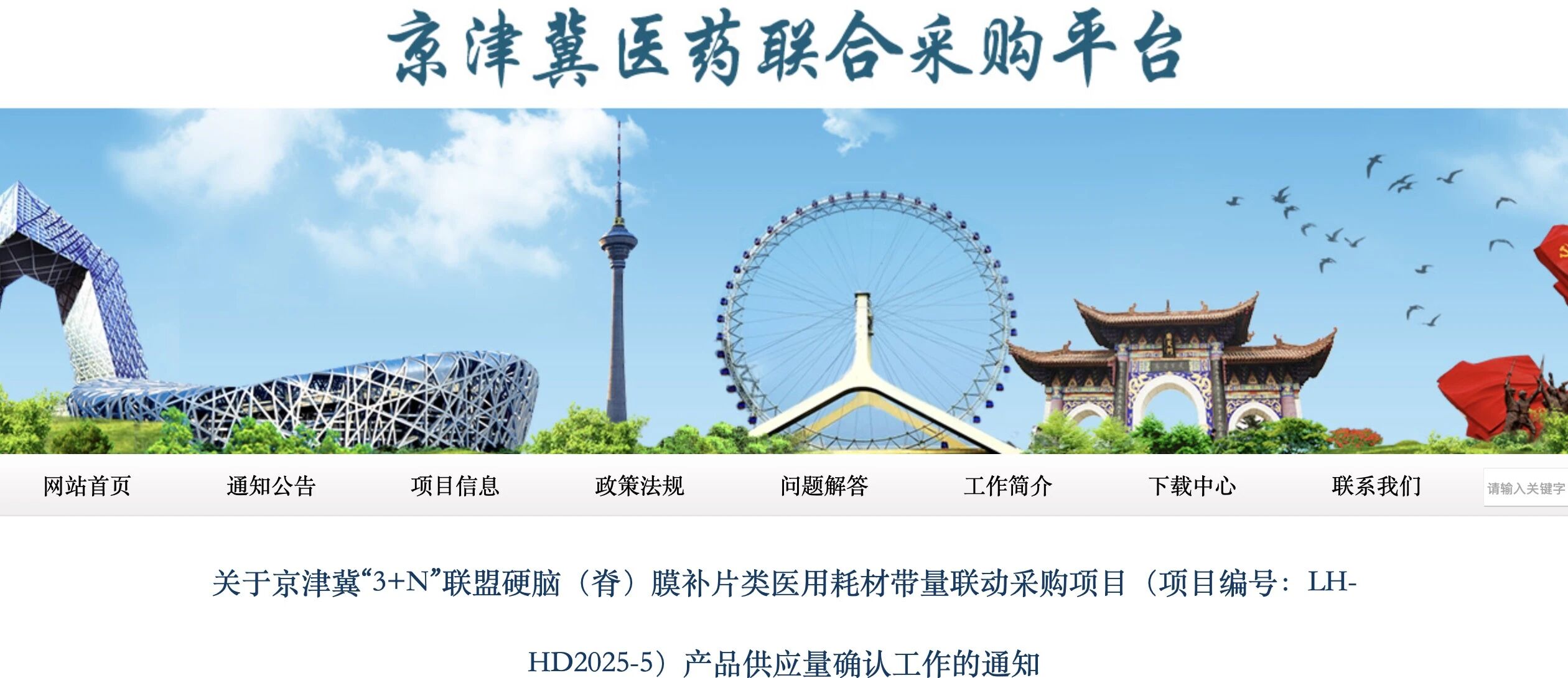 3月18日,天津市醫藥采購中心發布京津冀“3+N”聯盟硬腦(脊)膜補片類和留置針類集采產品供應量確認工作的通知。