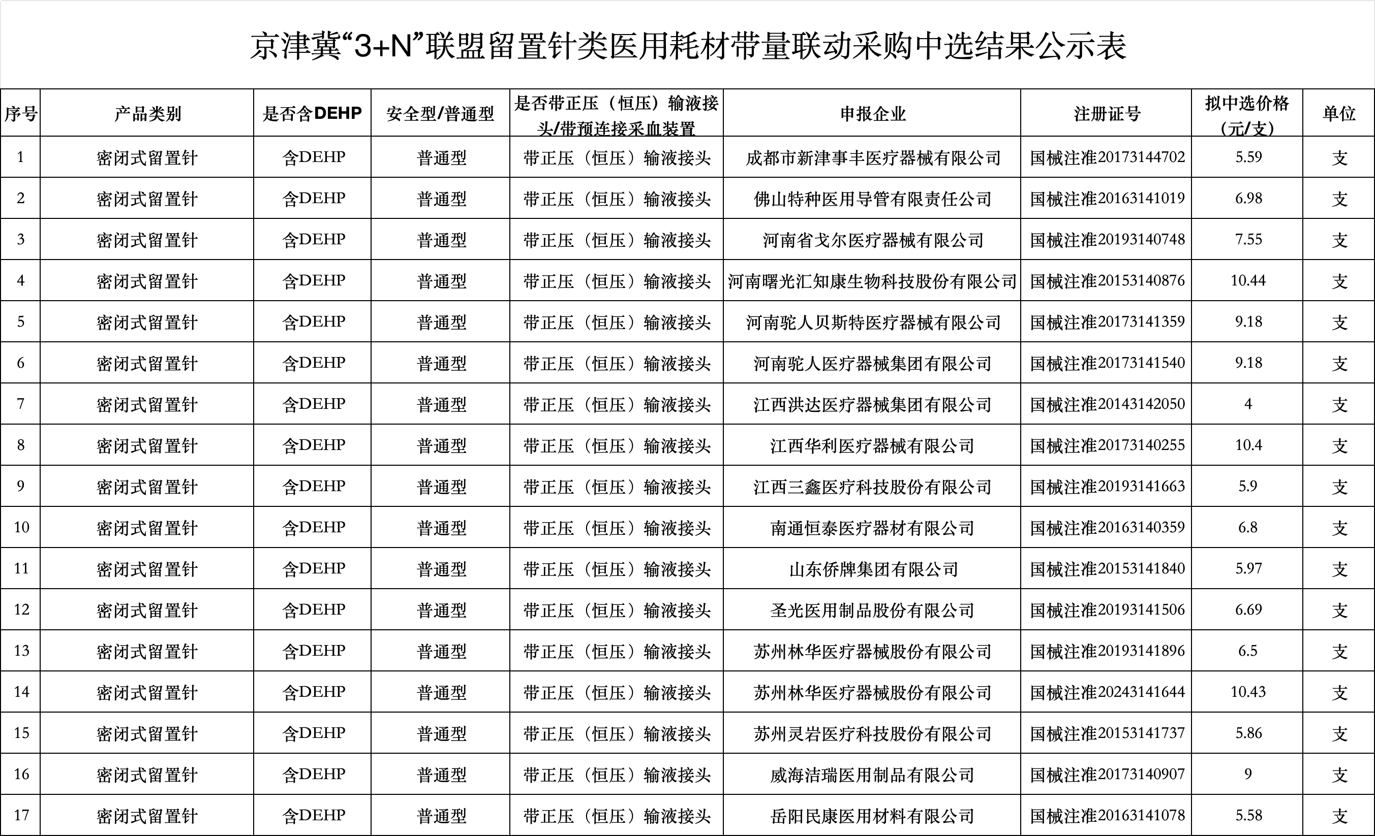 其中,含DEHP密閉式留置針(普通型)的擬中選價格區間為2.18元-10.44元;含DEHP密閉式留置針(安全型)的擬中選價格區間為4.5元-22.75元。不含DEHP密閉式留置針(普通型)的擬中選價格區間為2.28元-13.2元;不含DEHP密閉式留置針(安全型)的擬中選價格區間為3.14元-35元。