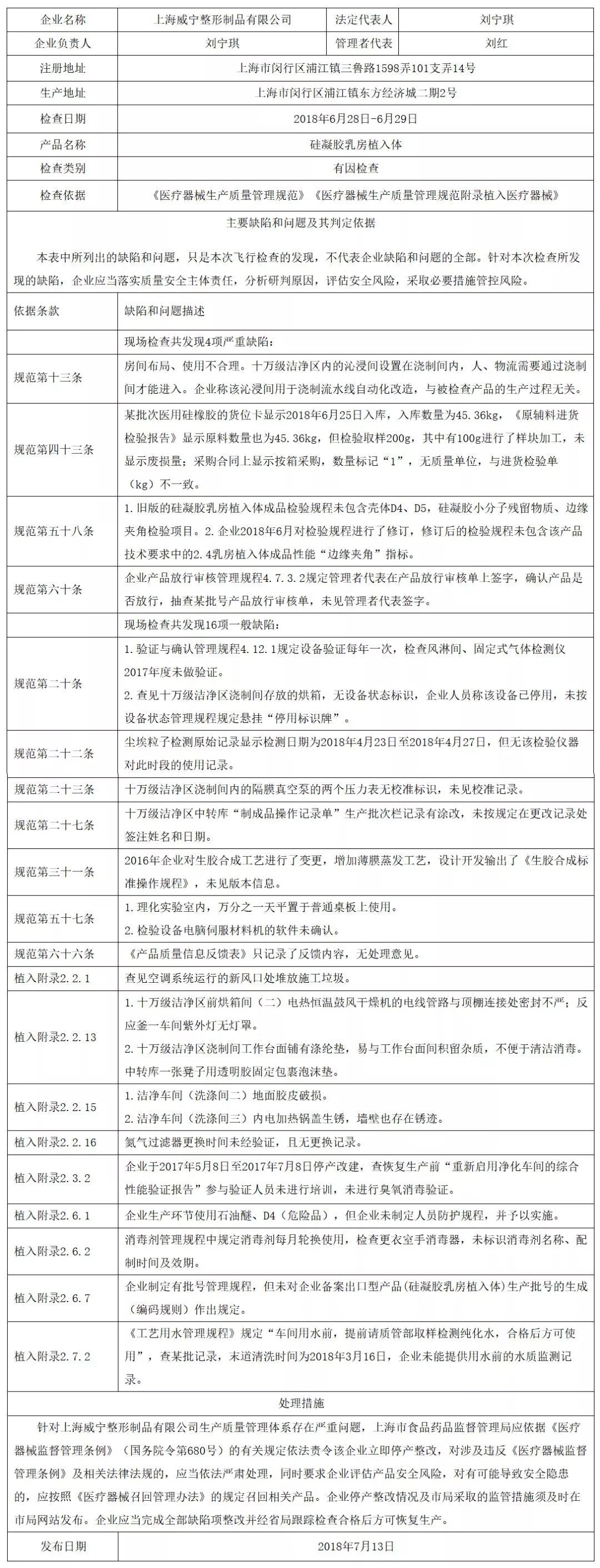 附件:對上海威寧整形制品有限公司飛行檢查通報