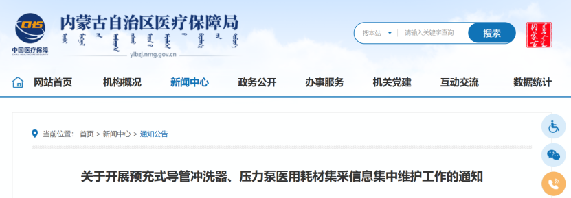 5月30日,內蒙古醫保局發布《關于開展預充式導管沖洗器、壓力泵醫用耗材集采信息集中維護工作的通知》(以下簡稱《通知》)。