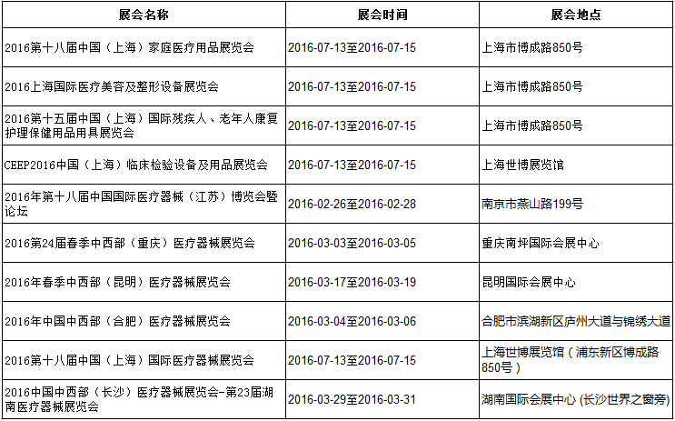 2016國內醫療器械展一覽表