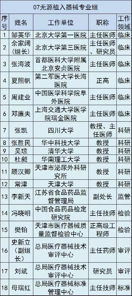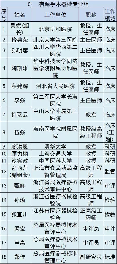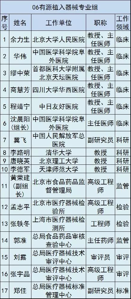 按照規定,這16個專業組委員將直接參與本組相關醫療器械產品的風險評估、分類界定、分類目錄維護等工作。