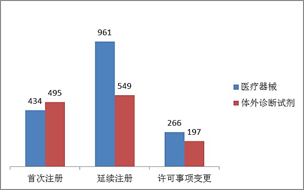 2016年,食品藥品監(jiān)管總局共受理醫(yī)療器械注冊、延續(xù)注冊和許可事項變更申請8920項,與2015年相比注冊受理項目減少5.1%。