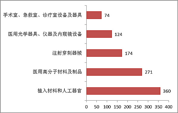 注冊數(shù)量前五位的境內(nèi)第三類醫(yī)療器械是:植入材料和人工器官,醫(yī)用高分子材料及制品,注射穿刺器械,醫(yī)用光學(xué)器具、儀器及內(nèi)窺鏡設(shè)備,手術(shù)室、急救室、診療室設(shè)備及器具。