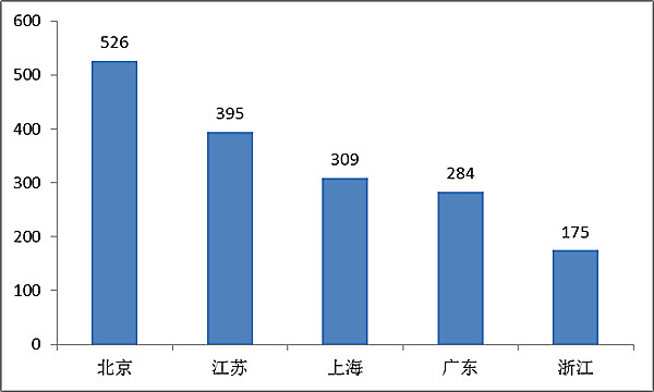 其中,北京、江蘇、上海、廣東、浙江是境內(nèi)第三類醫(yī)療器械注冊數(shù)量排前五名的省份,占2016年境內(nèi)第三類醫(yī)療器械注冊數(shù)量的69%。