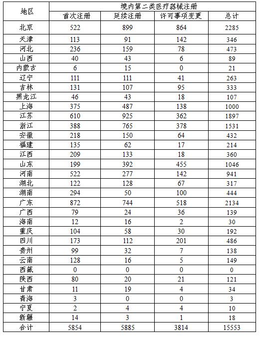 (一)境內(nèi)第二類醫(yī)療器械注冊情況