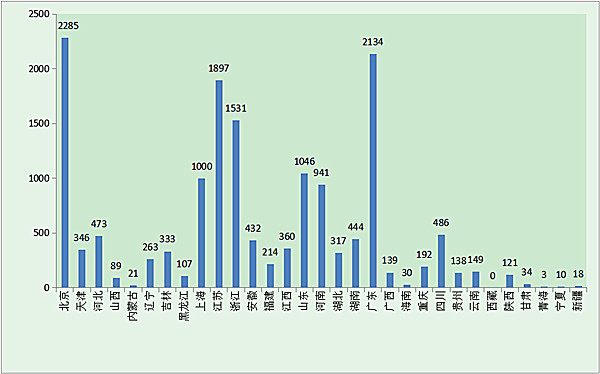 圖17.各省境內(nèi)第二類醫(yī)療器械注冊數(shù)據(jù)圖
