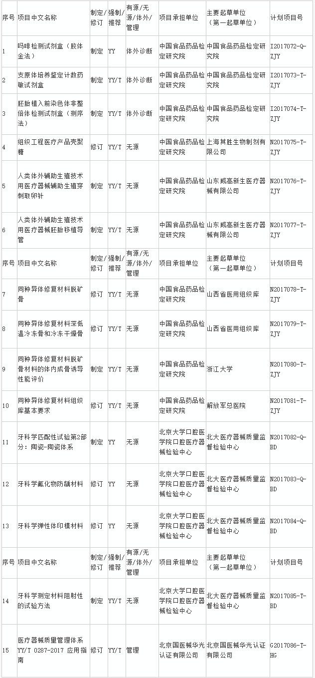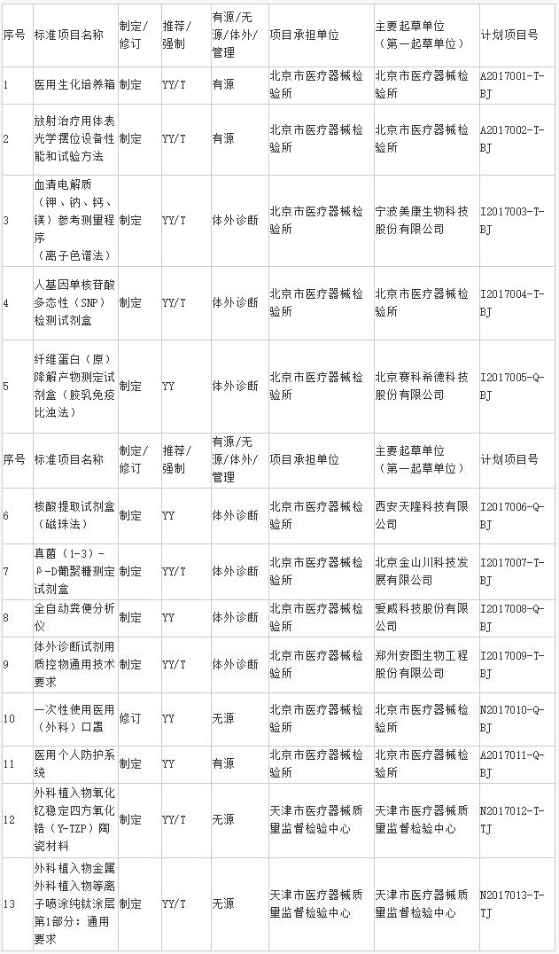 總局印發(fā)2017年醫(yī)療器械行業(yè)標準制修訂項目