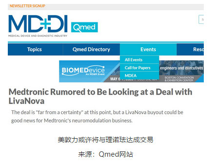據了解,2015年,神經調節醫療器械的領導者Cyberonics公司以27億美元收購意大利公司索林集團合并成立新公司LivaNova。
