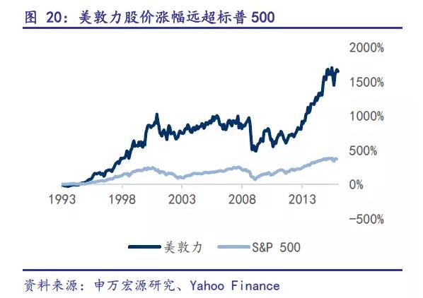 隨著并購的進行,美敦力營業收入持續增長,2015年營業額僅次于強生醫療,成為全球醫療器械巨頭。其二級市場股票價格的表現也非常優秀,遠遠跑贏標普500 指數。