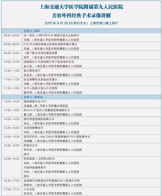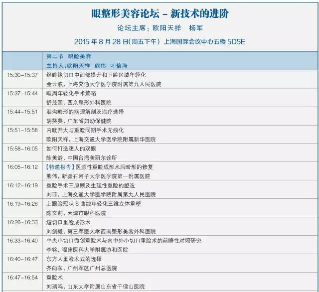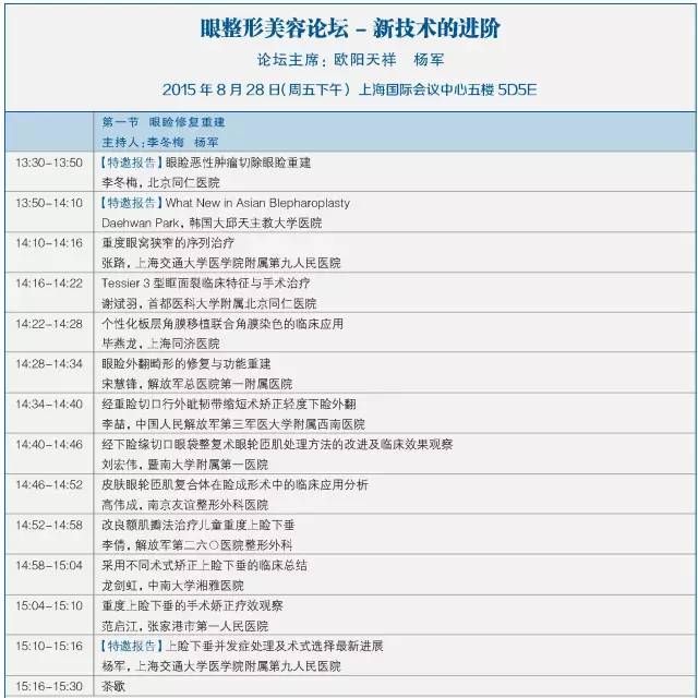 第十二屆中國醫師協會美容與整形醫師大會暨第七屆泛亞地區面部整形與重建外科學會學術大會將于2015年8月28-30日在上海國際會議中心召開,本次會議主要以眼周修復重建新技術、眼瞼美容新進展為主題。
