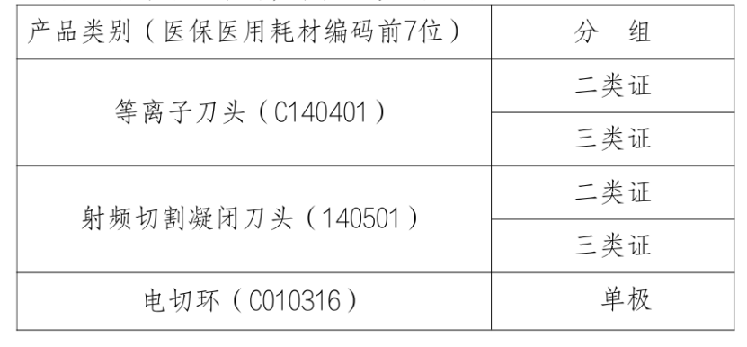 本次集中帶量采購品種為國家醫保局醫用耗材編碼前7位為C140401、C140501、C010316的一次性射頻、等離子刀頭及電切環醫用耗材。