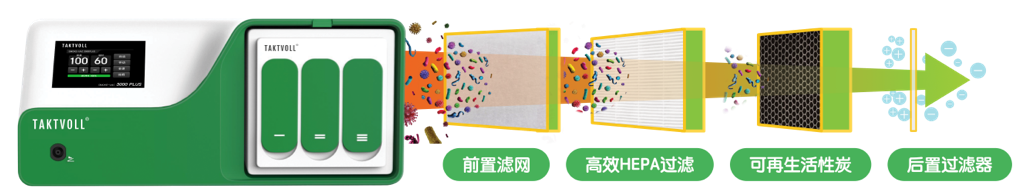 采用ULPA,有效率達到99.999%過濾0.3微米以上顆粒的煙霧、灰塵以及細菌微生物等污染物。