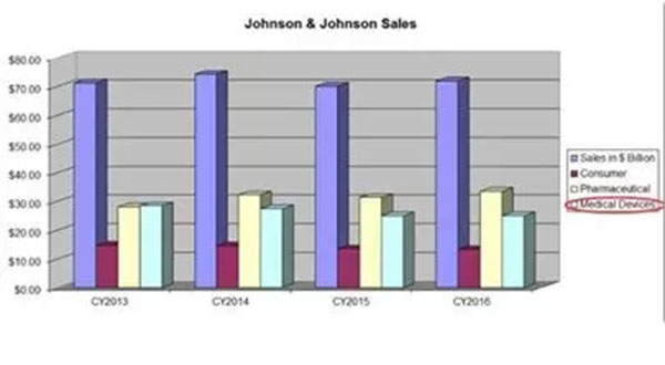 強(qiáng)生年報(bào)數(shù)據(jù)顯示,其糖尿病護(hù)理部門(mén)的收入自2012年以來(lái)一直在下降,2016年和2017年前9個(gè)月,連續(xù)兩年下滑7%以?xún)?nèi)。
