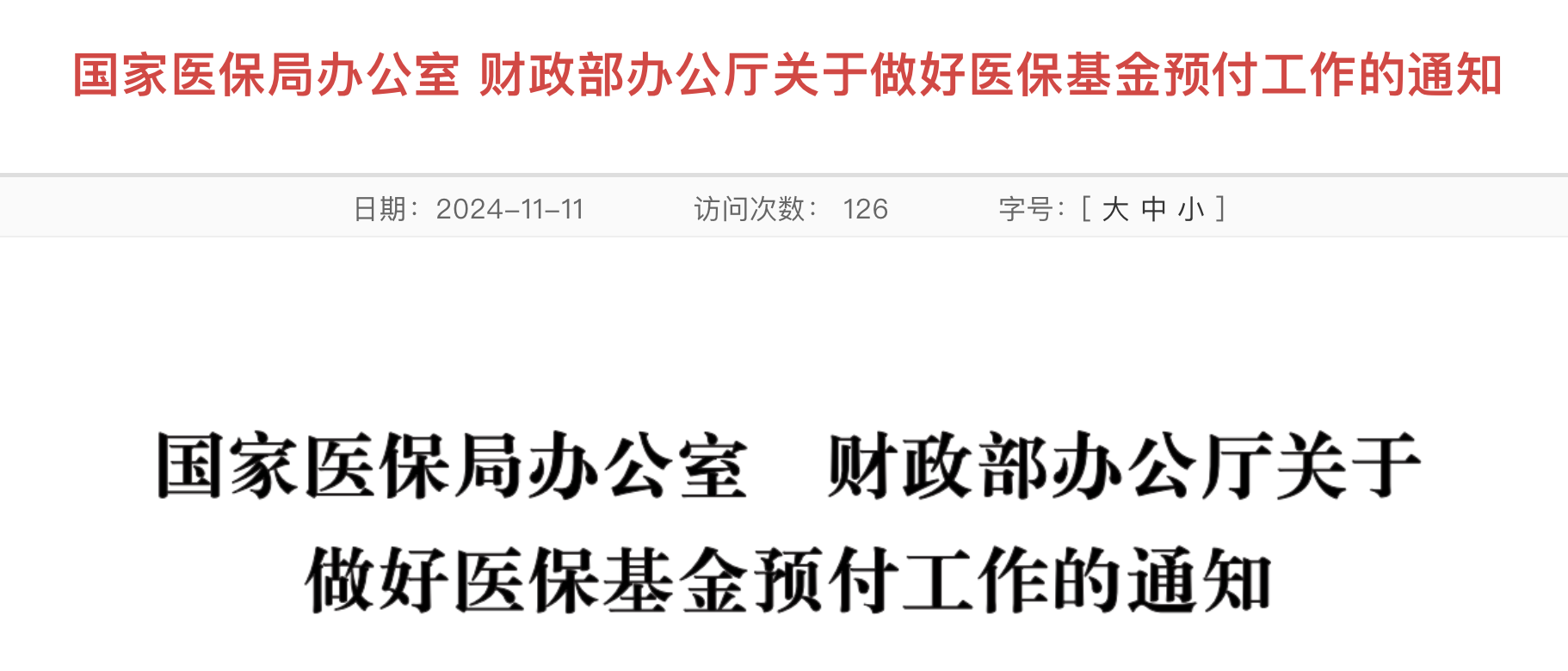 今日(11月11日),國家醫保局辦公室、財政部辦公廳發布《關于做好醫保基金預付工作的通知》(以下簡稱“通知”)(全文附文末)。