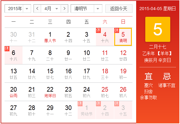2015年北京華康普美科技有限公司,“清明節”假期為:4月4日(星期六)至4月6日(星期一)共放假3天,4月7日(星期二)正常上班。