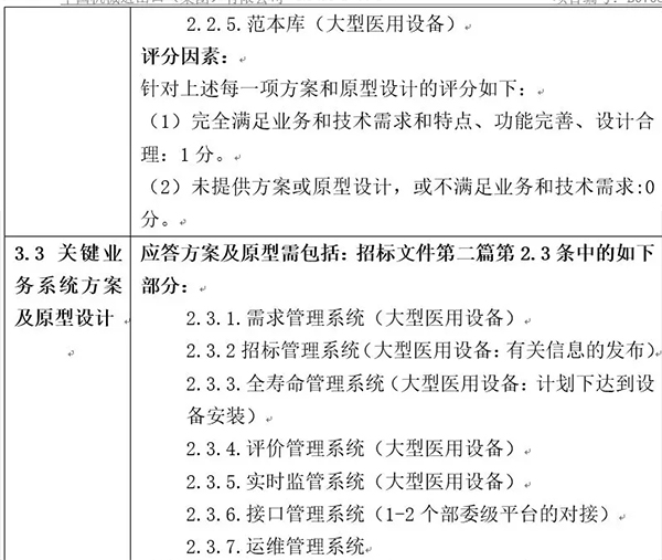 從招標文件看,該平臺就是要對大型醫用設備進行招投標管理的。