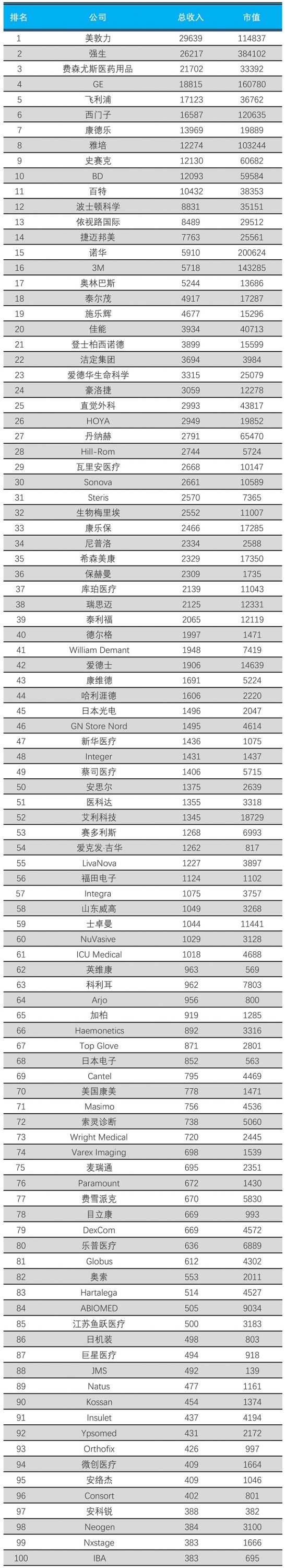 2018全球醫療器械公司100強,6家中國公司!