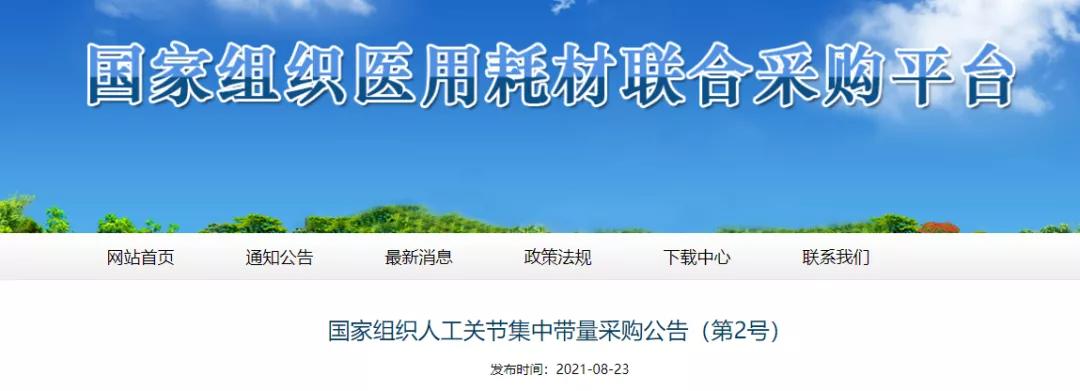 醫藥網8月25日訊 根據國家組織高值醫用耗材聯合采購辦公室23日發布的《國家組織人工關節集中帶量采購文件》(簡稱《文件》),人工關節高值耗材的國家集中帶量采購將于9月14日在天津正式啟動。
