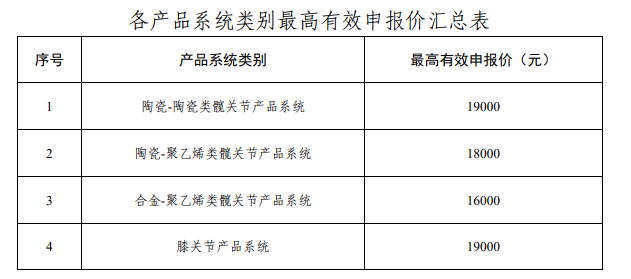 申報企業未按擬中選規則一獲得擬中選資格,若陶瓷-陶瓷類髖關節產品系統類別企業競價比價價格不高于陶瓷-聚乙烯類髖關節產品系統類別或合金-聚乙烯類髖關節 產品系統類別最高擬中選企業競價比價價格,且競價比價價格 不高于最高有效申報價的 50%,則不高于上述最高擬中選企業競價比價價格的陶瓷-陶瓷類髖關節產品系統相應申報企業擬中選。