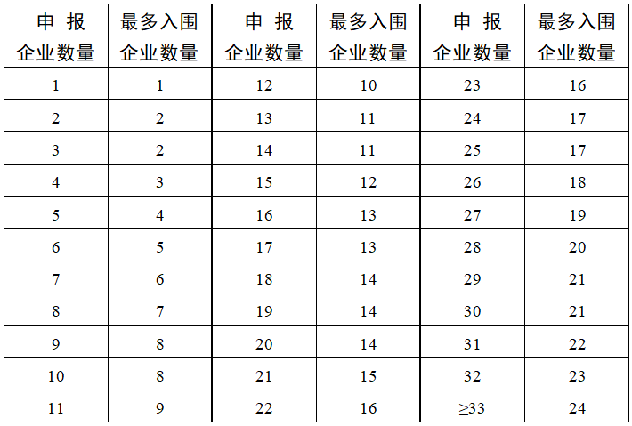 同一競價單元內,按企業競價比價價格由低到高排序,確定入圍企業。入圍企業的產品系統競價比價價格不高于最高有效申報價。