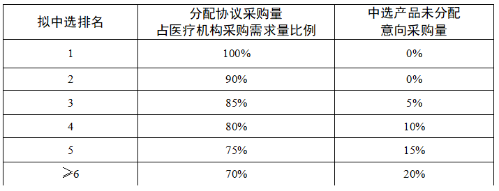 1、同一競價單元中選企業按中選排名順序,分配協議采購量;