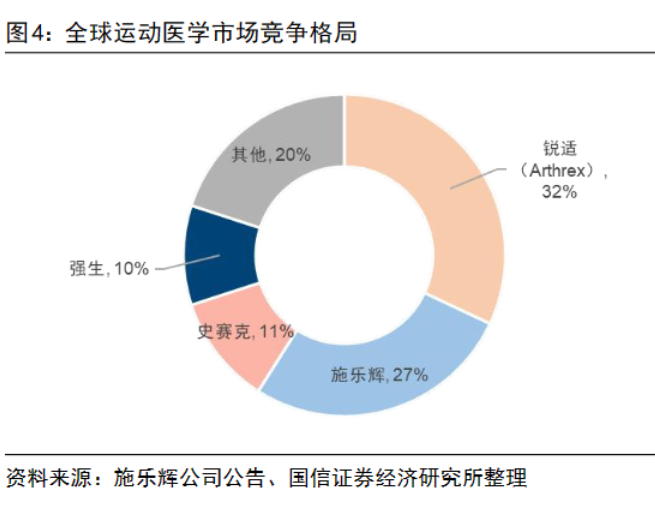 根據 Orthoworld 統計,2022 年預計全球運動醫學市場規模約63億美元。全球運動醫學市場高度集中,頭部企業包括銳適、施樂輝、史賽克、強生等。