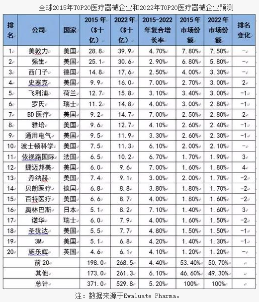 幾天前,Evaluate Pharma前不久發(fā)布了報(bào)告EvaluateMedTech® World Preview 2016, Outlook to 2022,對(duì)全球當(dāng)前的醫(yī)療器械市場(chǎng)現(xiàn)狀以及未來七年的變局進(jìn)行了詳盡的分析,有理有據(jù),信息量非常豐富。