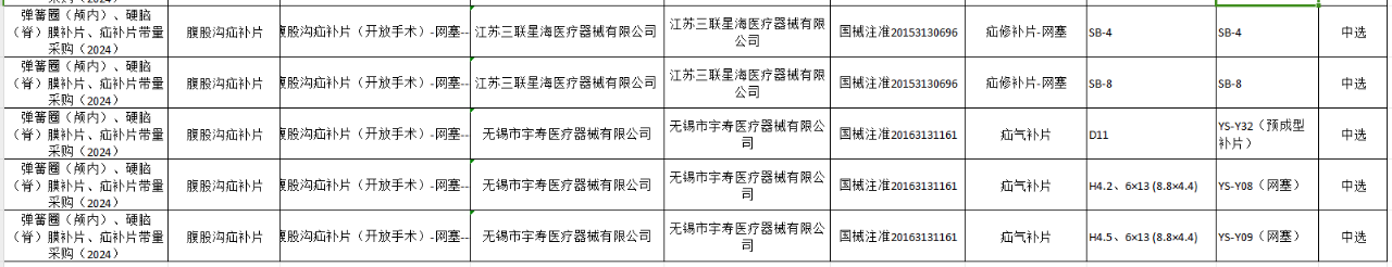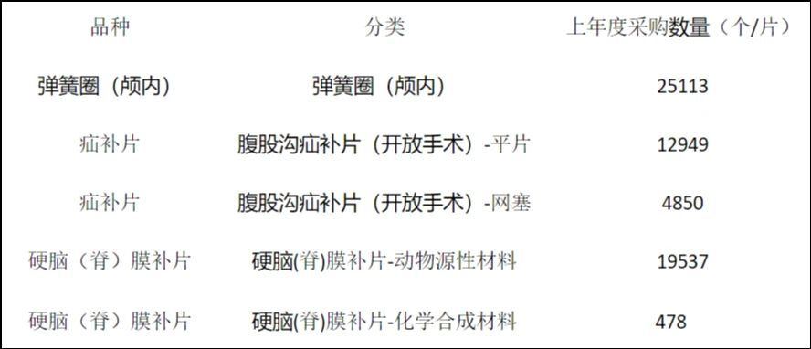 本次續(xù)約范圍為河北省組織彈簧圈(顱內(nèi))、硬腦(脊)膜補(bǔ)片、疝補(bǔ)片三類醫(yī)用耗材集中帶量采購。