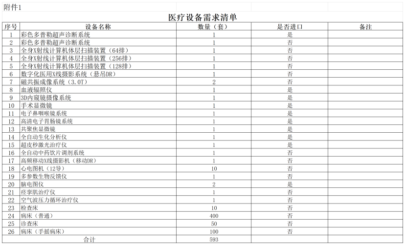 今年7月,海南省三亞市衛健委曾發布公告,對三亞市2024年醫療設備集中采購項目采購意向進行了公示,標的為核磁共振等醫療設備,彼時預算全額暫估為2.6億元。同月,還開展了三亞市2024年醫療設備集中采購意向市場調研,同步公開的醫療設備需求清單中共有593臺醫療設備。
