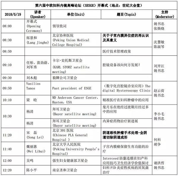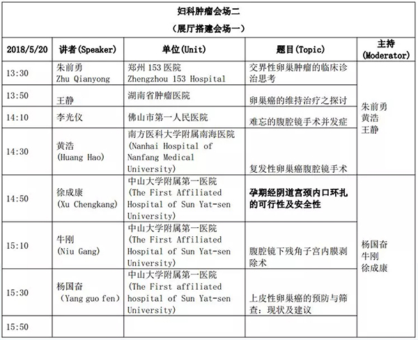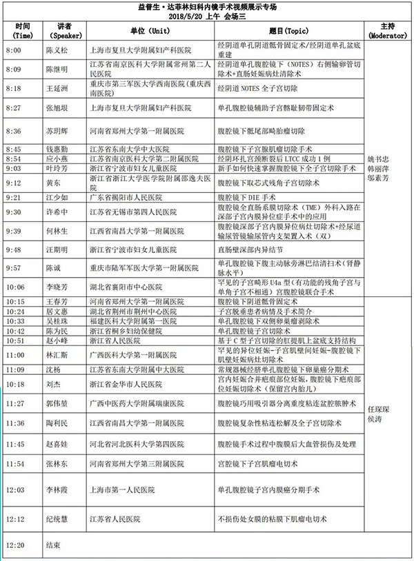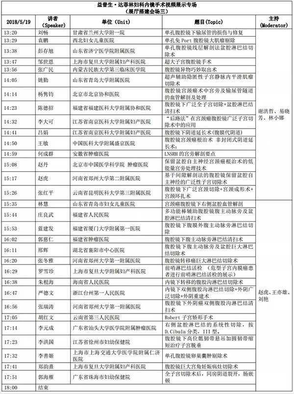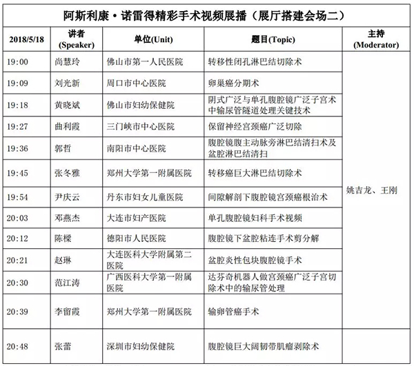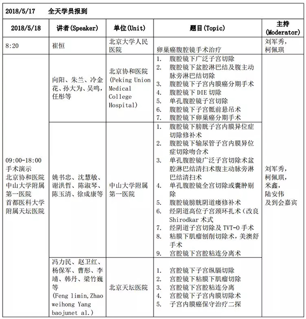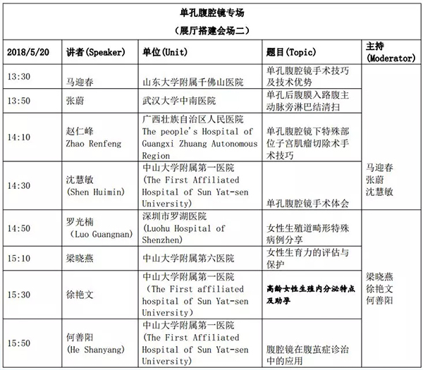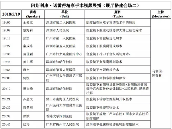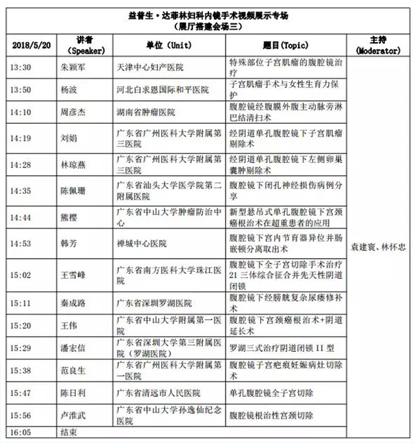 5月18日:全天腹腔鏡手術演示各類婦科腹腔鏡手術(手術視頻將由北京協和醫院、北京天壇醫院、中山大學附屬第一醫院同時手術轉至白云國際會議中心演示)
