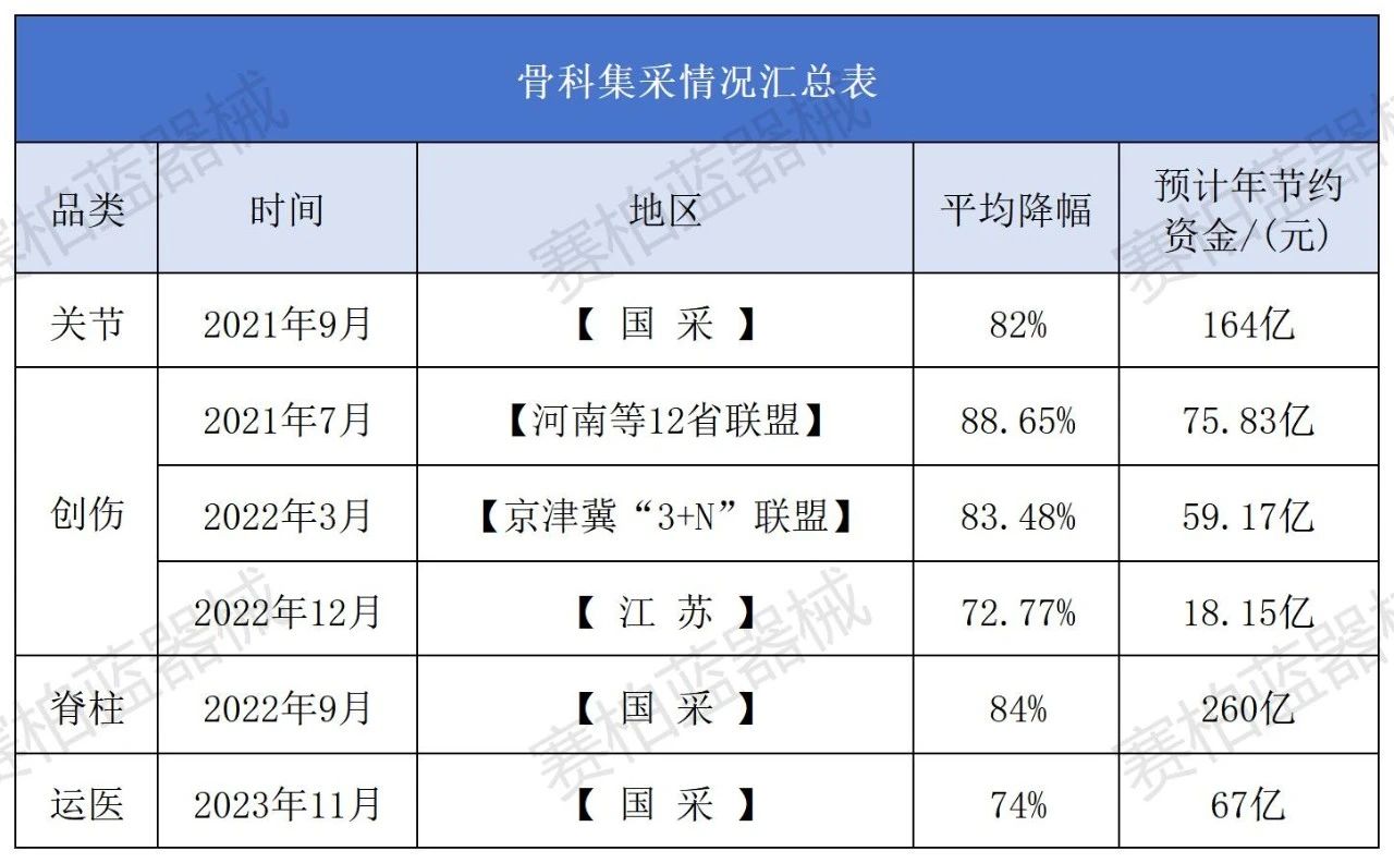 從省際聯盟到國采,骨科四大領域均經歷大規模降價洗禮。
