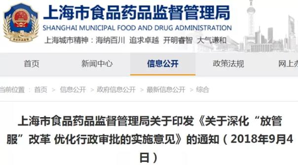上海市食品藥品監督管理局關于深化“放管服”改革優化行政審批的實施意見