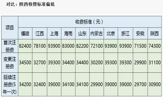 與其他收取醫(yī)療器械注冊(cè)費(fèi)的9個(gè)省份相比,陜西省的收費(fèi)標(biāo)準(zhǔn)還是偏低的,也就比安徽和內(nèi)蒙古貴了點(diǎn)