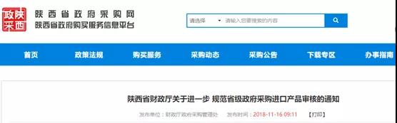 11月16日,陜西省財政廳發布了《陜西省財政廳關于進一步 規范省級政府采購進口產品審核的通知》(以下簡稱《通知》)。