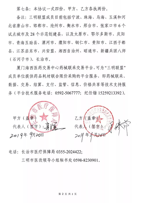 9月20日,山西省長治市與三明市簽訂藥品耗材聯合限價采購協議,成為藥品耗材聯合限價采購三明聯盟(以下簡稱三明聯盟)新成員,醫藥改革邁出新步伐。