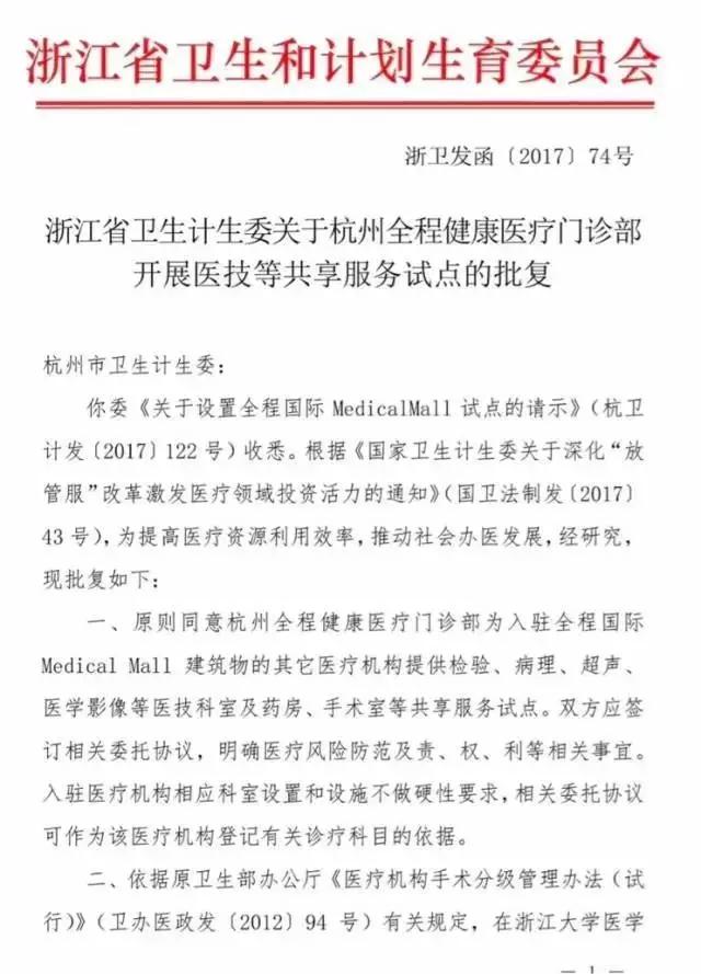 日前,浙江省衛(wèi)計委批復同意:杭州全程健康醫(yī)療門診部為入駐全程國際 Medical Mall 的其他醫(yī)療機構(gòu)提供檢驗、病理、超聲、醫(yī)學影像等醫(yī)技科室及藥房、手術(shù)室等共享服務試點。入駐醫(yī)療機構(gòu)相應科室設置和設施不做硬性要求。