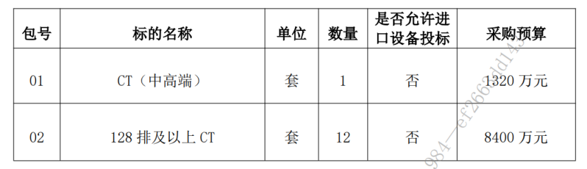 項(xiàng)目三預(yù)算總金額9720萬元,擬采購CT(中高端)1套,128排及以上CT12套。不允許進(jìn)口設(shè)備投標(biāo)。
