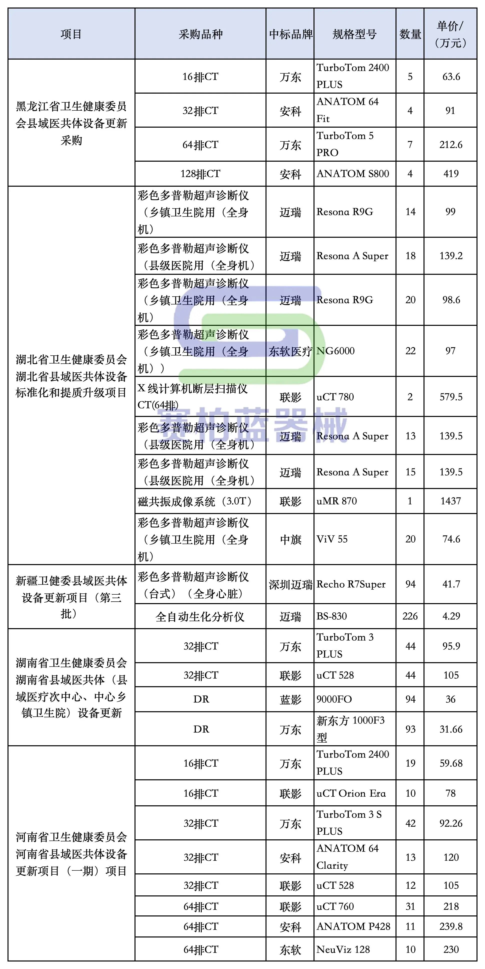 6月16日,遼寧省縣域醫(yī)共體醫(yī)療設(shè)備更新項(xiàng)目(第一批CT)發(fā)布招標(biāo)公告,共采購(gòu)CT 26臺(tái),預(yù)算金額12320萬(wàn)元。