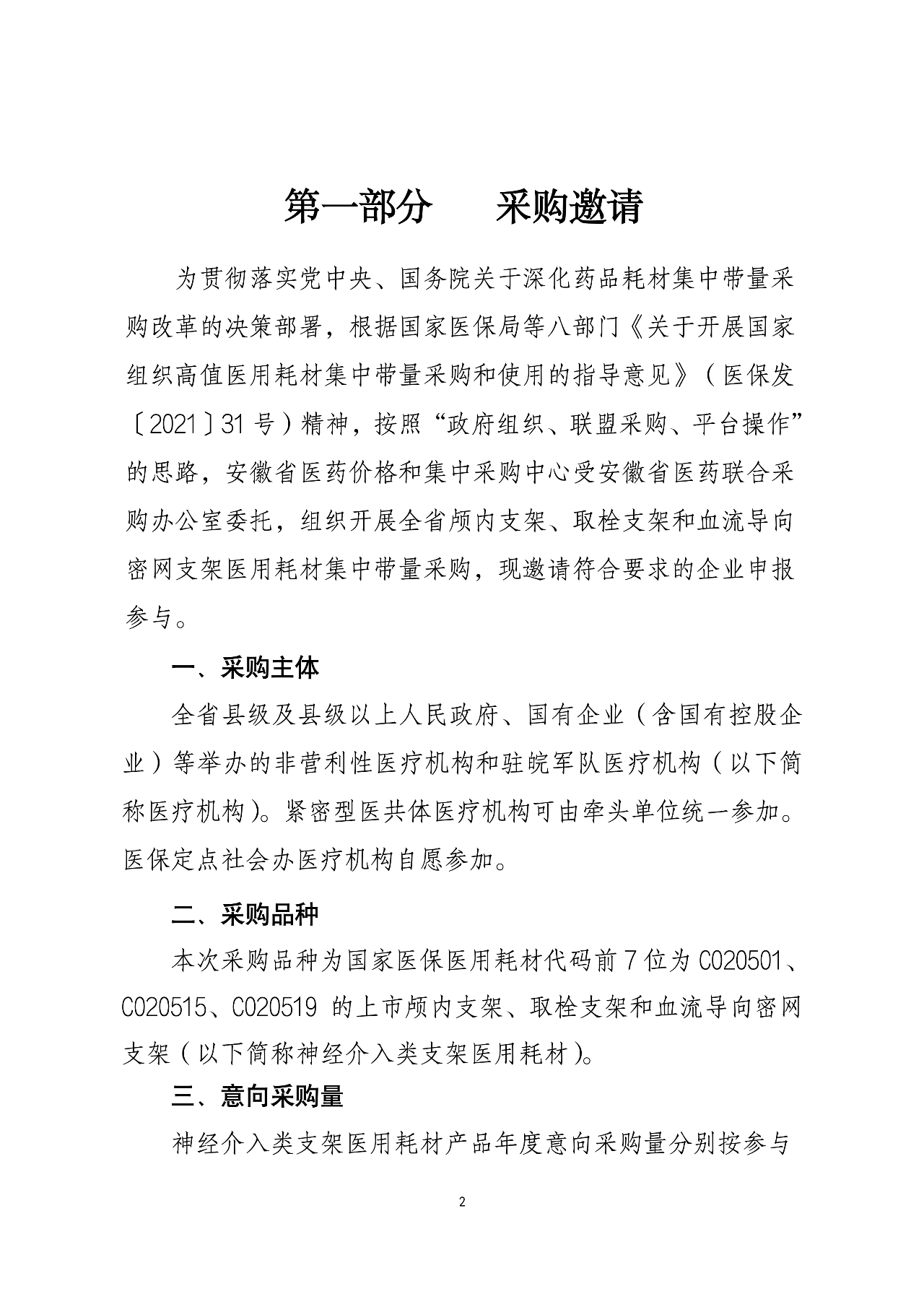 本次采購品種為國家醫保醫用耗材代碼前7位為C020501、C020515、C020519 的上市顱內支架、取栓支架和血流導向密網支架(以下簡稱神經介入類支架醫用耗材)。