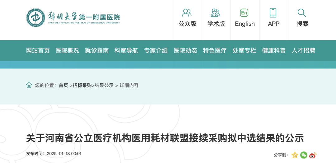 1月18日,河南省公立醫療機構醫用耗材采購聯盟辦公室公布《河南省公立醫療機構醫用耗材聯盟接續采購擬中選結果》,公示期間為2025年1月18日-2025年1月20日。